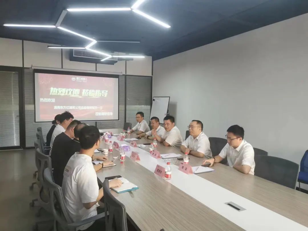 8月25日,湖南東方紅集團(tuán)副總經(jīng)理、建筑公司總經(jīng)理鄭智洪應(yīng)率領(lǐng)集團(tuán)各部門(mén)、各子公司負(fù)責(zé)人代表來(lái)到湖南固工機(jī)器人有限公司研發(fā)基地進(jìn)行考察,觀看工地端機(jī)器人的現(xiàn)場(chǎng)演示與技術(shù)講解,聽(tīng)取了相關(guān)產(chǎn)品研發(fā)方面的匯報(bào),并就兩家公司的深度合作進(jìn)行探討,湖南固工機(jī)器人有限公司總經(jīng)理黃浩等參與接待和座談。